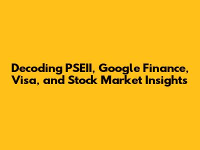 Hey finance enthusiasts! Let's dive deep into the fascinating world of finance and break down some key concepts, including PSEII, Google Finance, Visa, and the exciting realm of stock market. This guide is your friendly companion, offering insights and actionable information to help you navigate the financial landscape. Think of this as your go-to resource for understanding the complexities and making informed decisions. Whether you're a seasoned investor or just starting out, we've got you covered. So, grab your favorite beverage, get comfy, and let's unravel the secrets of PSEII, Google Finance, Visa, and stocks!